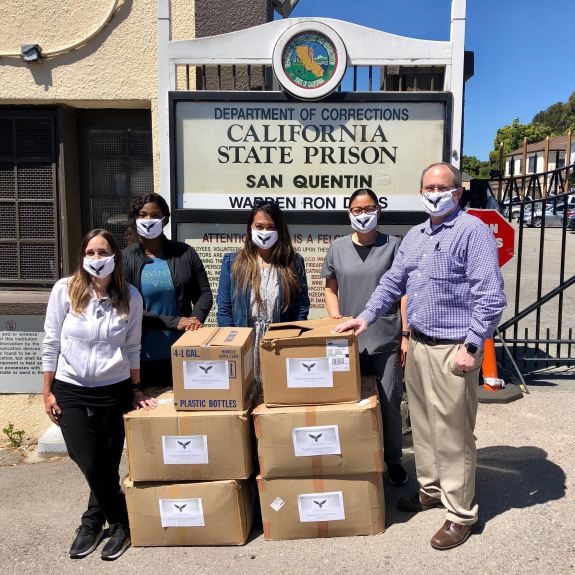 The Vallejo-based Robby Poblete Foundation delivered personal protection equipment (PPE) that included 1,000 masks to San Quentin last week. Foundation founder Pati Navalta, is in the middle. Thank you: Times Herald