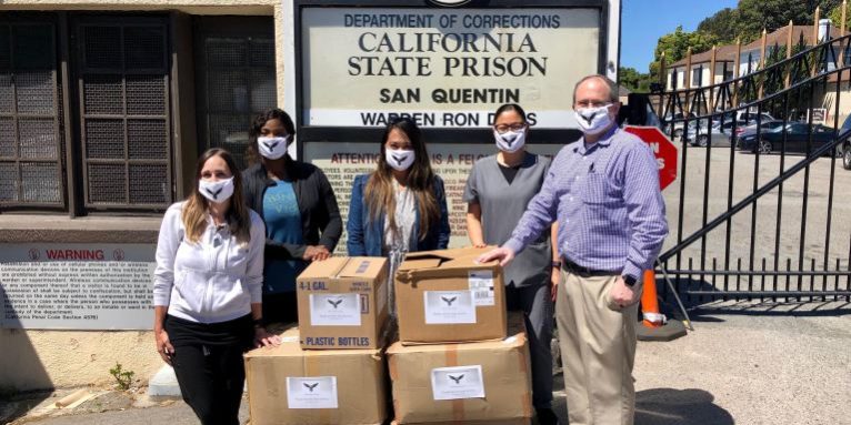 The Vallejo-based Robby Poblete Foundation delivered personal protection equipment (PPE) that included 1,000 masks to San Quentin last week. Foundation founder Pati Navalta, is in the middle.